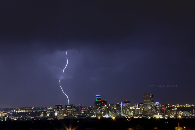 | After taking what seemed to be hundreds of photos, I finally captured the lightning as the storm moved over Denver. |